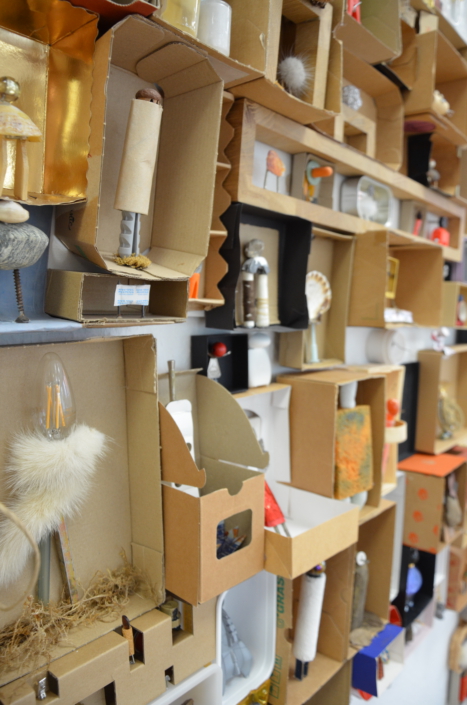 Arbeiten aus dem Lockdown, ca 60 Boxes, Größe variabel, work in progress.